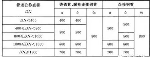 綜合管廊的管道安裝凈距表(mm)