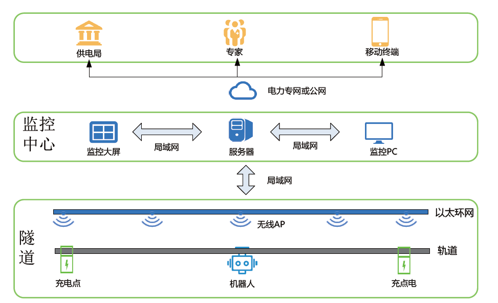 巡檢機器人的可移動(dòng)性使其能夠對電纜隧道監控實(shí)現空間無(wú)死角監控,緊急情況時(shí)可以及時(shí)趕到第一事故現場(chǎng),把現場(chǎng)的視頻、圖像、有害氣體含量等信息及時(shí)送回指揮中心;同時(shí)也可以執行應急對講指揮等相關(guān)的處置措施,起到更好的防災減災的效果。