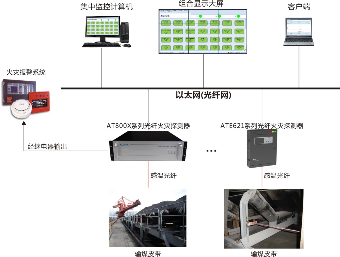 輸煤系統承擔著(zhù)煤炭的輸送、粉碎、儲藏等任務(wù),輸煤系統的可靠運行是煤炭相關(guān)行業(yè)如煤炭礦井、燃煤發(fā)電廠(chǎng)、煤化工廠(chǎng)、冶金等正常、安全生產(chǎn)的前提。煤是易燃品,因皮帶摩擦、煤粉自燃等原因很容易引發(fā)火災。由于皮帶是轉動(dòng)的,一旦發(fā)生火災,火勢會(huì )迅速蔓延,直至燒毀輸煤皮帶、燒斷輸煤棧橋以及燒壞輸煤設備附近的其他設施,直接導致停產(chǎn),所以它也是煤炭相關(guān)行業(yè)火災監控的重點(diǎn)。